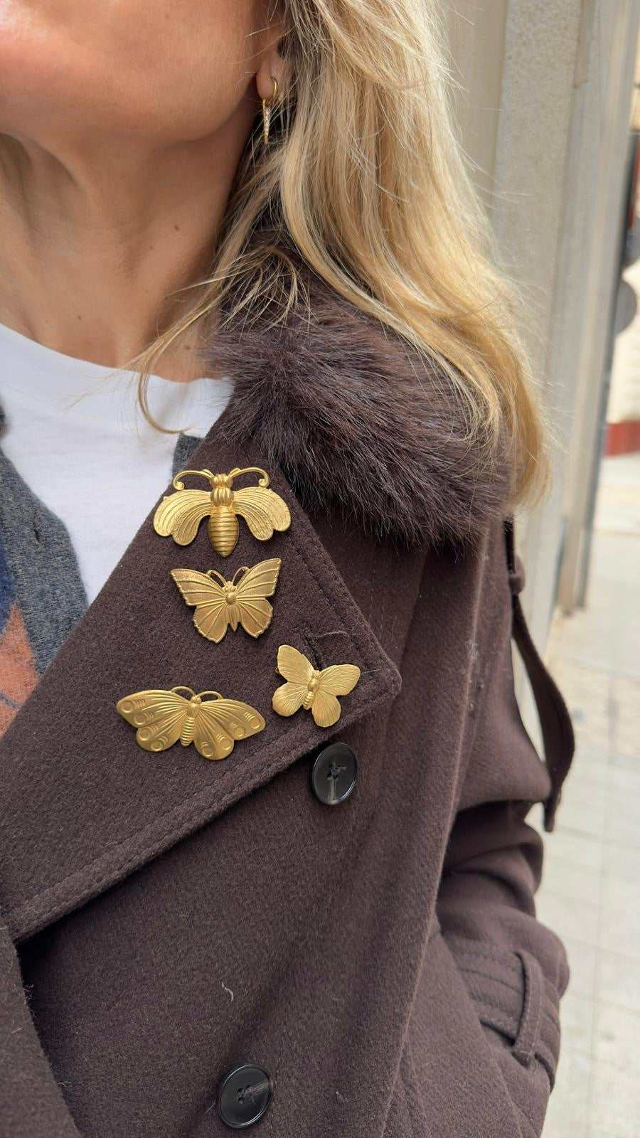 El broche mariposa está diseñado en latón dorado. El broche se caracteriza por su originalidad gracias a su forma, solo apta para las más atrevidas y románticas. Es perfecto para quien quiera lucir diferente en un evento especial o en el día a día. Se puede combinar con otros de nuestros complementos.Cuidados del complemento