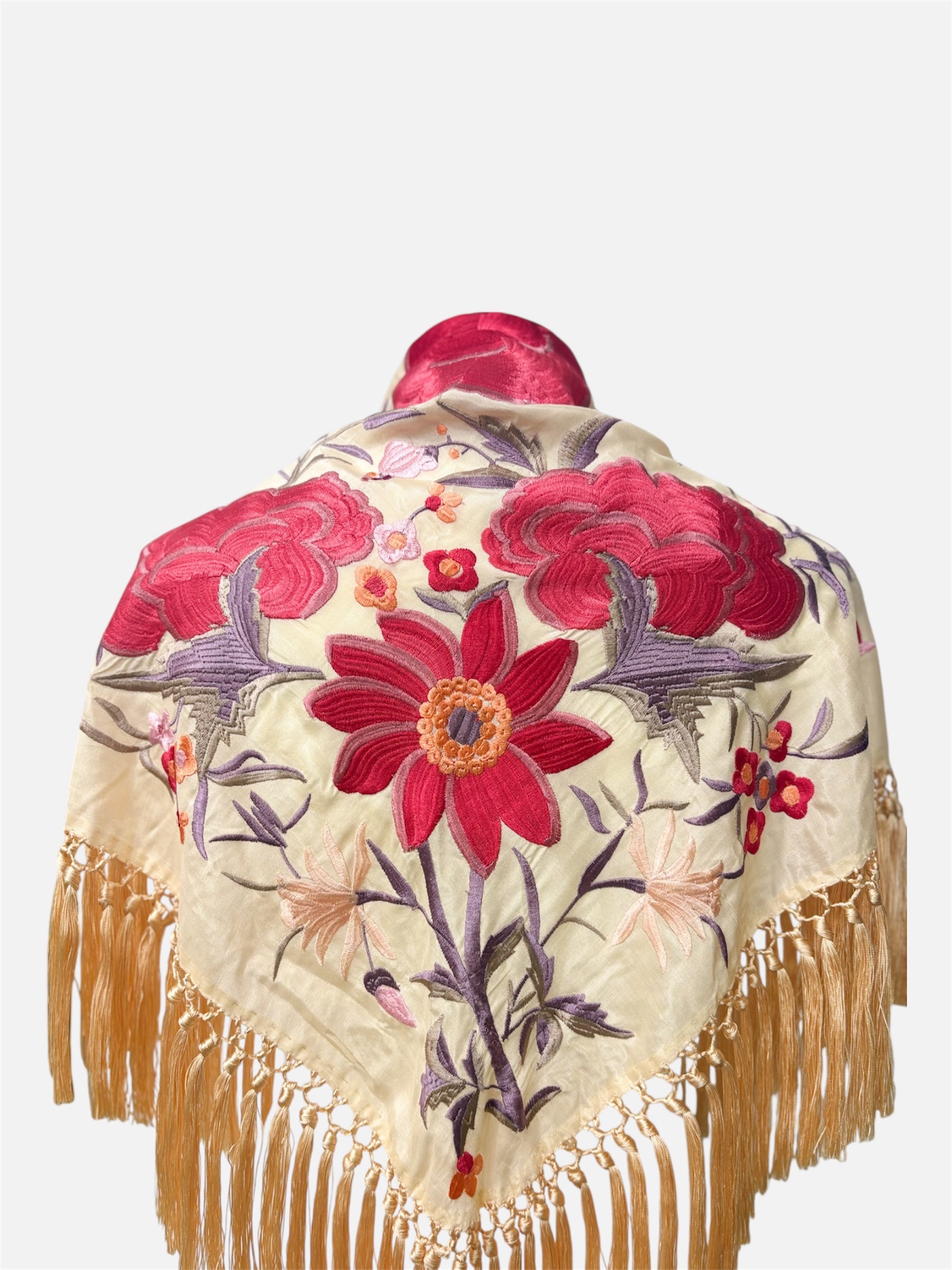 Nuestro mantón bordado clásico es una pieza esencial que nunca pasa de moda. Con su diseño triangular y su cuidada confección, es ideal para completar cualquier traje de flamenca con un toque elegante y tradicional.