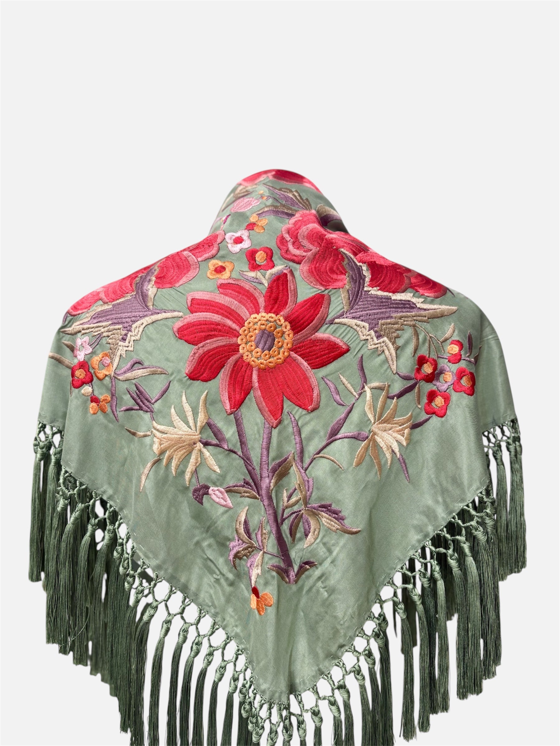 Nuestro mantón bordado clásico es una pieza esencial que nunca pasa de moda. Con su diseño triangular y su cuidada confección, es ideal para completar cualquier traje de flamenca con un toque elegante y tradicional.