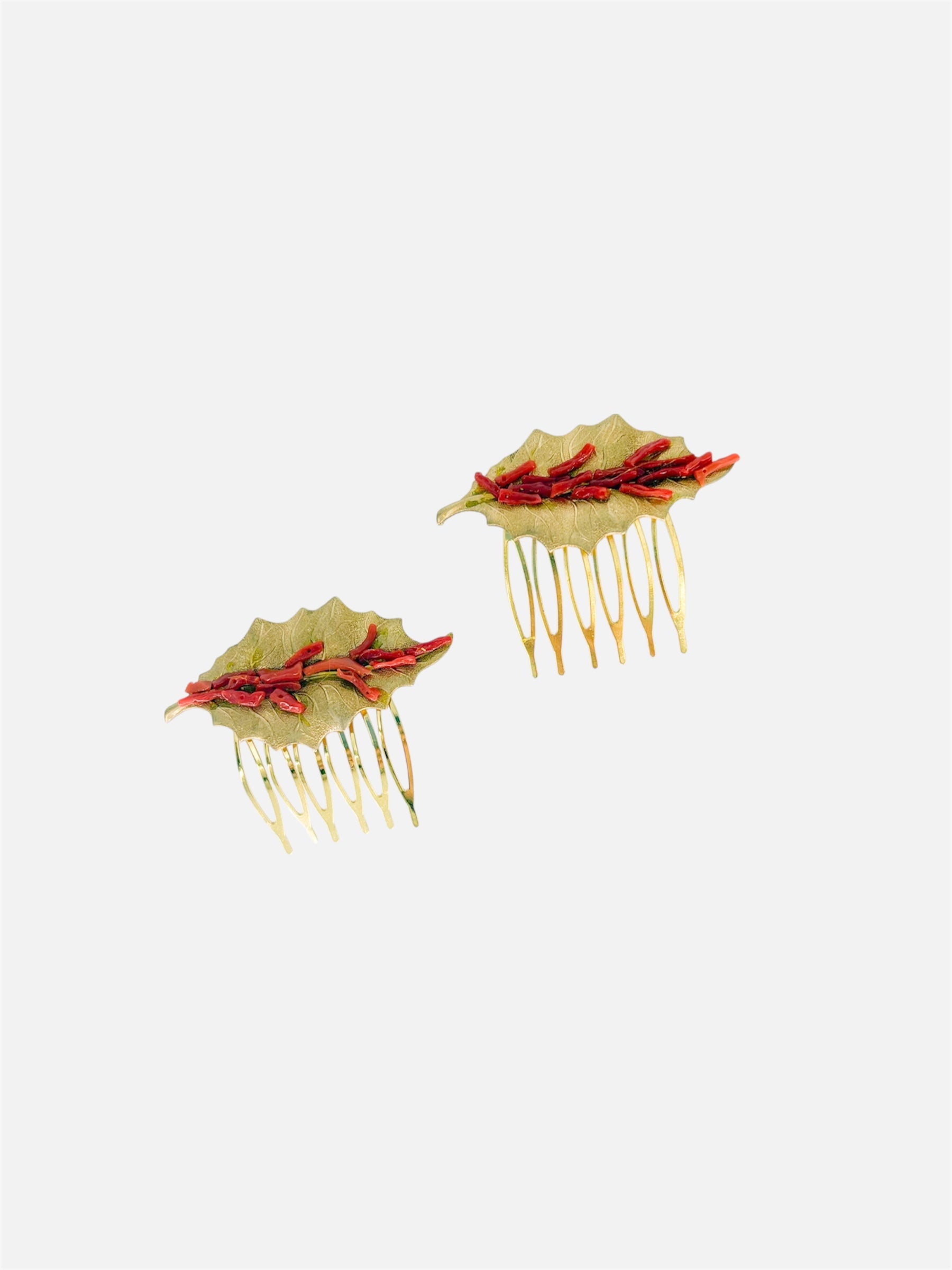 Hecho con latón y coral natural.
